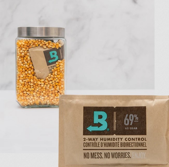 Te is szeretsz otthon mozizni? Tartsad frissen a magokat, pattanásra készen. A Boveda a 60-grammos, 69%-os relatív páratartalmú csomagját ajánlja ami kétirányú páratartalom-szabályozással segíti, hogy mindig lehessen friss popcorn az otthonodban.